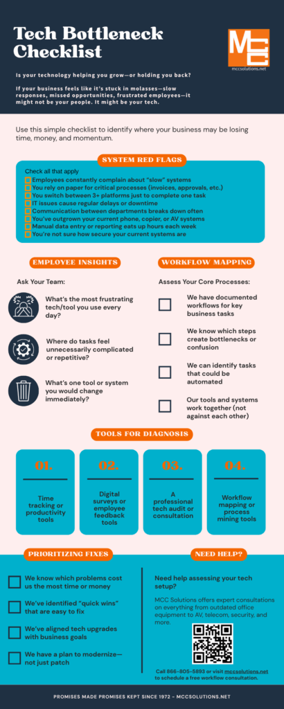 Here’s a straightforward, no-fluff guide to identifying the technology bottlenecks that are quietly costing you time, money, and sanity.